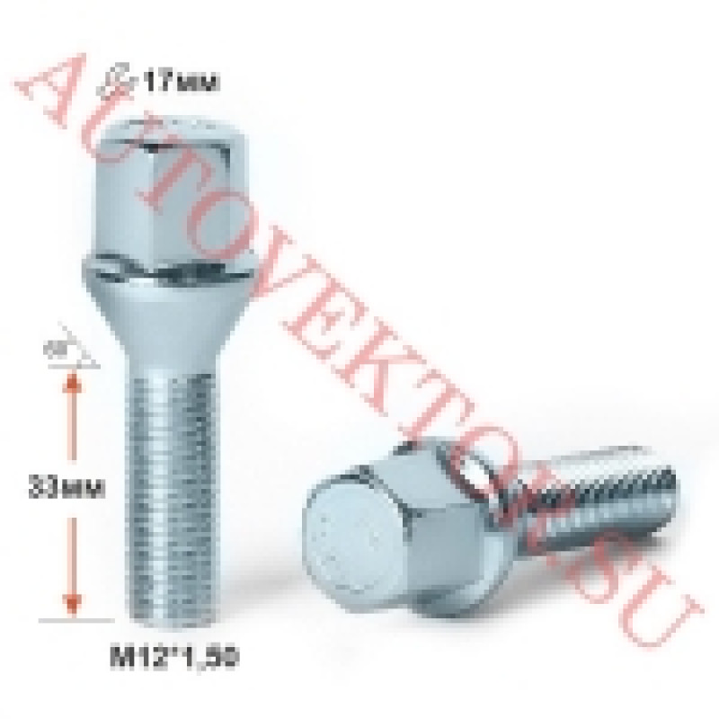 Болт колеса М12х1.5х58х33 кон. хром